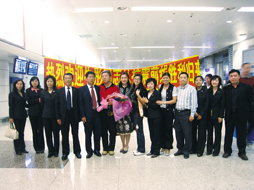 在吉林,吉林分公司總助陳廣華帶隊(duì)來到機(jī)場,迎接牛彤抗震救災(zāi)凱旋而歸,讓這位東北