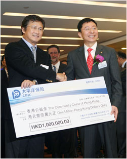 港聯交所主席夏佳理贈送上市紀念品——代表 港公益金捐贈100萬港幣,用于慈善事業。