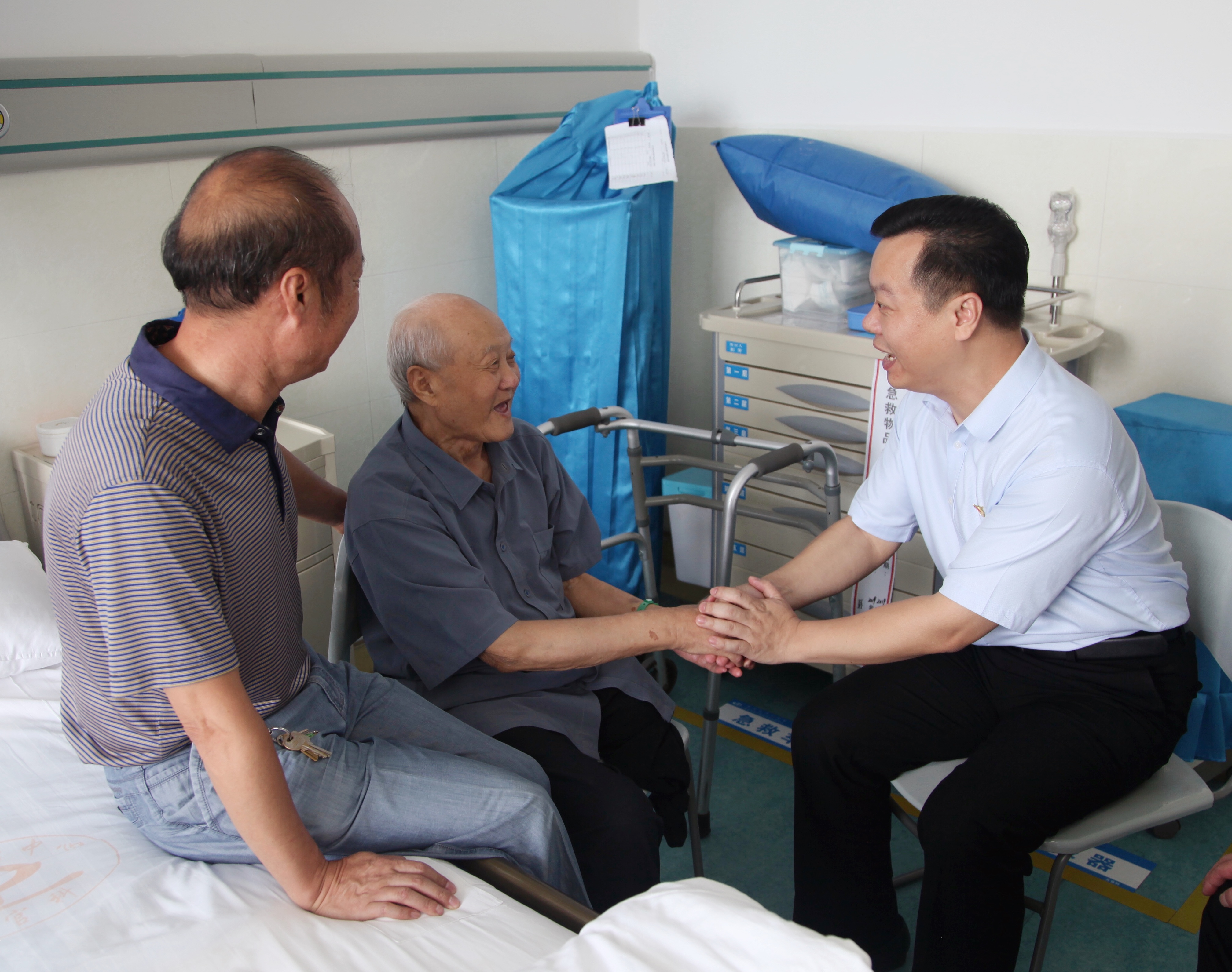 中秋節期間,中國太保產險湖北分公司黨委書記、總經理周厚鈥專程趕到來鳳縣人民醫院探望老英雄,再次向老英雄致以崇高敬意和節日祝福。