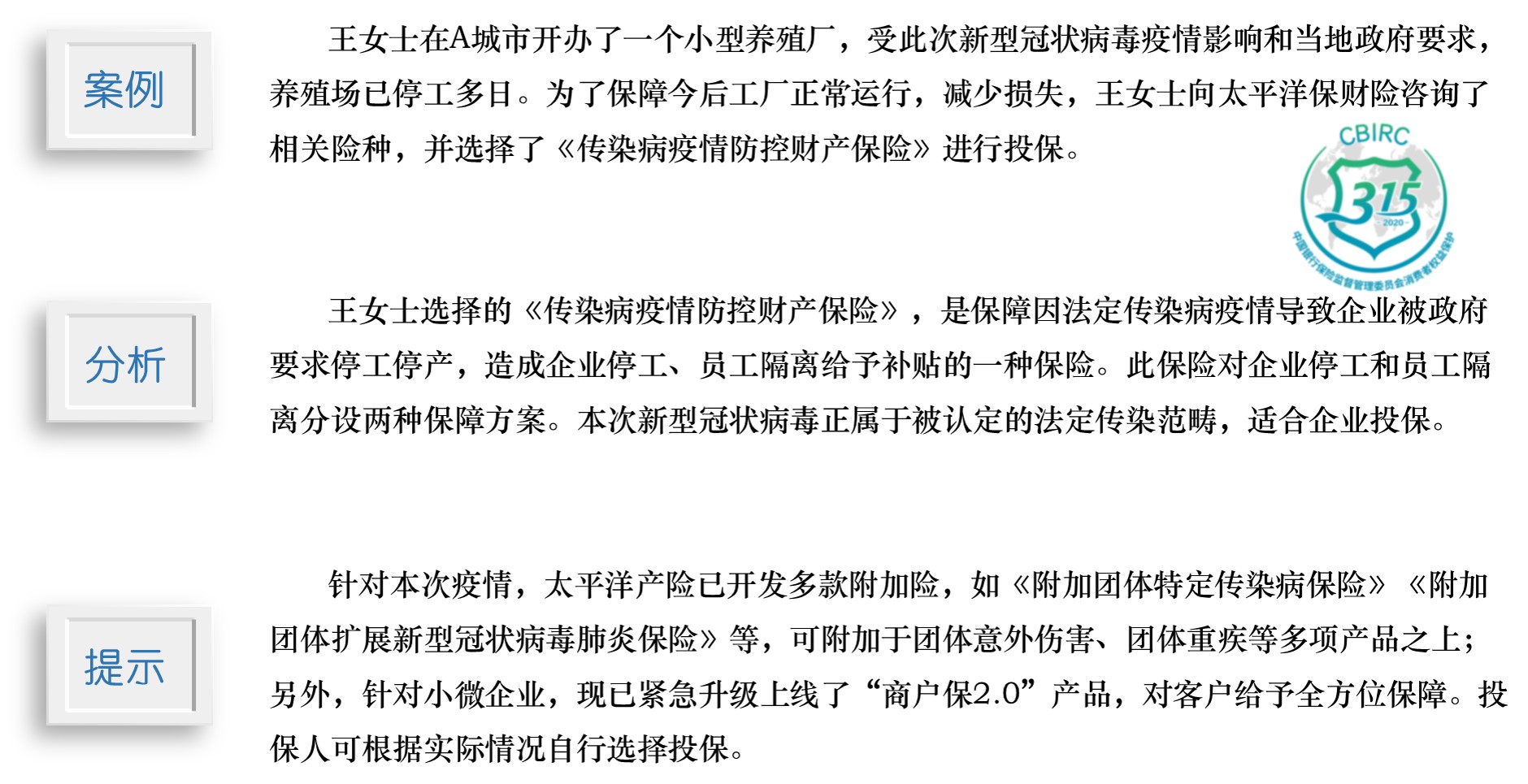 3·15|以案說險:(企業客戶)疫情期間如何挑選適合自己的產品