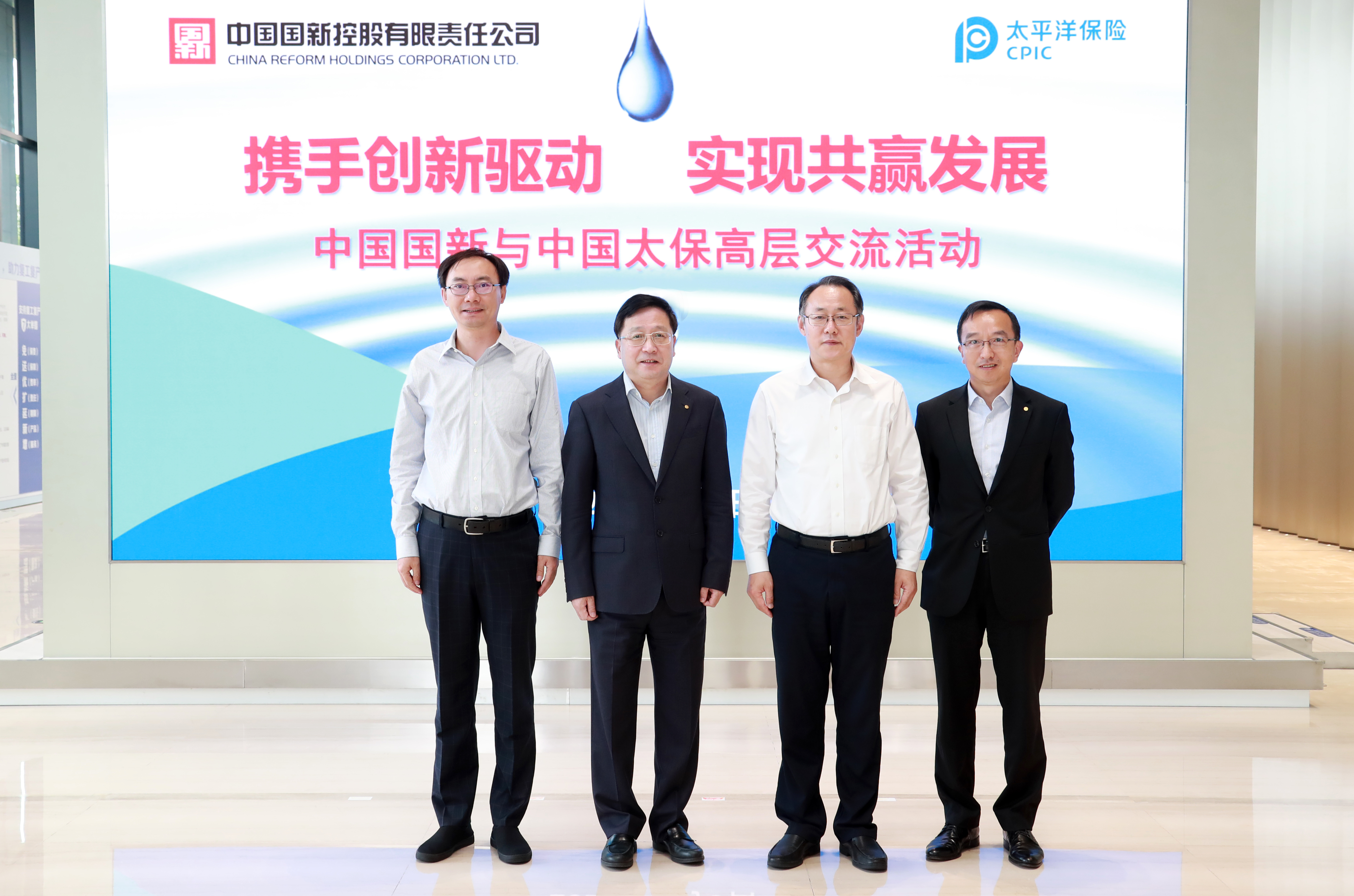 6月8日,中國太保董事長孔慶偉會見來訪的中國國新董事長周渝波一行,雙方對持續深入地推進創新驅動發展、助力經濟轉型升級形成深入共識,中國太保總裁傅帆陪同會見。