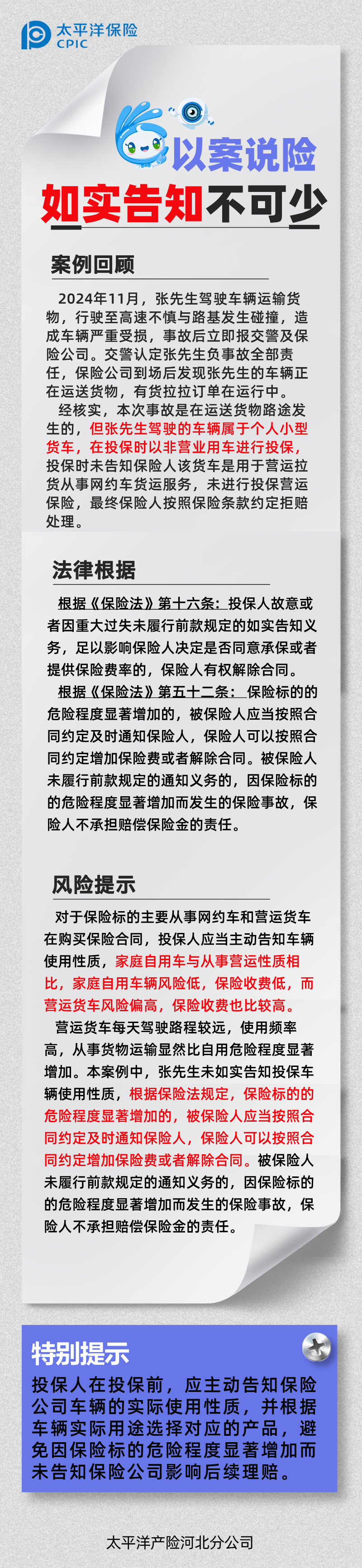 以案說險 | 車用性質勿隱瞞,如實告知不可少