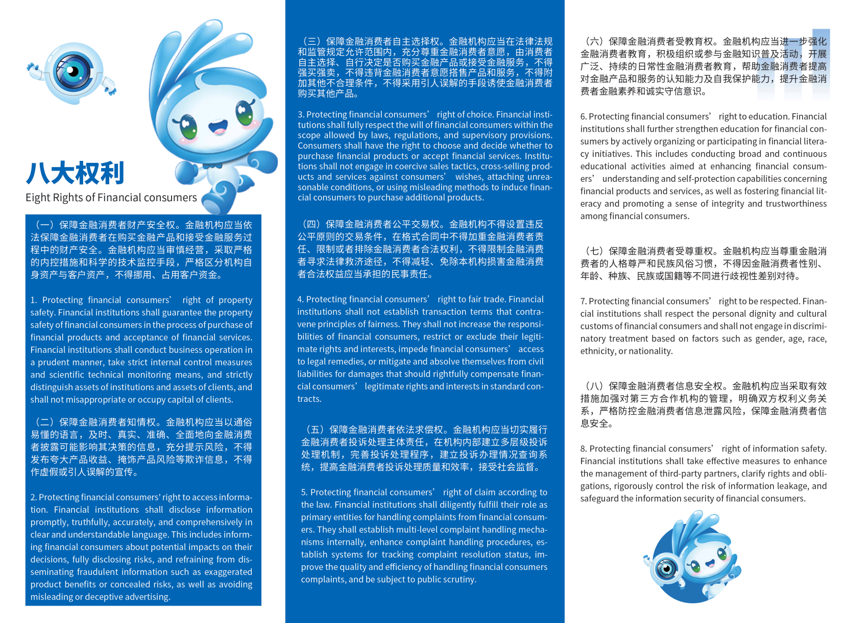 【保險知識】保障金融消費者八項基本權利,切實維護金融消費者合法權益(中英文版本)