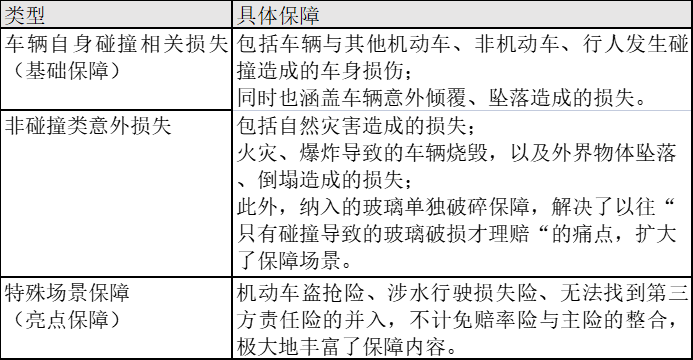 具體來看,現(xiàn)行車損險(xiǎn)的核心保障可分為三大類。