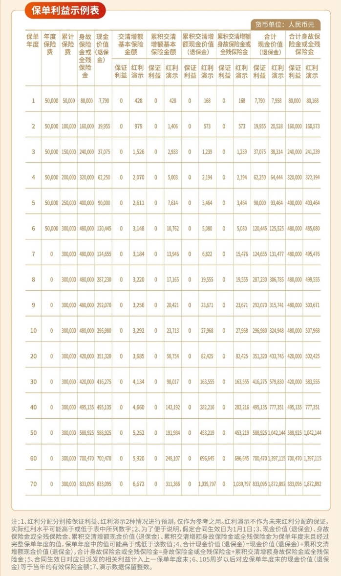 保單有效期內,可參與公司紅利分配。紅利分配是不確定的。合同保單紅利的分配方式為購買交清保額,購買交清保額后,若被保險人身故或全殘,除了給付身故保險金或全殘保險金外,還將依條款約定,給付累積交清增額基本保險金額對應的身故保險金或全殘保險金。