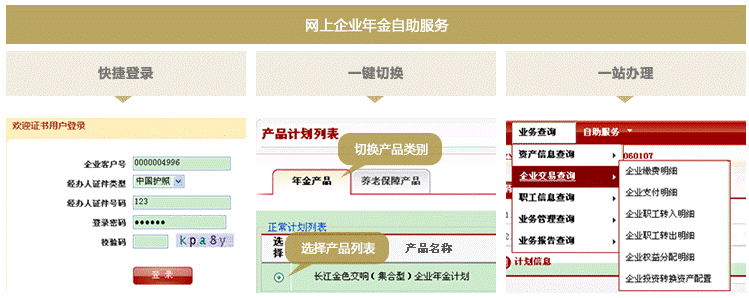 長(zhǎng)江養(yǎng)老網(wǎng)上平臺(tái)是養(yǎng)老金行業(yè)內(nèi)首家實(shí)現(xiàn)全天候服務(wù)與全業(yè)務(wù)覆蓋的電子商務(wù)平臺(tái)。平臺(tái)全面支持企業(yè)年金、養(yǎng)老保障等養(yǎng)老金業(yè)務(wù)的辦理與查詢,可一站式滿足企業(yè)包括繳費(fèi)、領(lǐng)取、人員管理、資產(chǎn)查詢、報(bào)表查詢等在內(nèi)的所有業(yè)務(wù)管理需求。目前平臺(tái)已服務(wù)企業(yè)數(shù)達(dá)6000多家,個(gè)人達(dá)80萬(wàn)人,已累計(jì)辦理養(yǎng)老金業(yè)務(wù)60多萬(wàn)筆,覆蓋了90%以上的企業(yè)年金客戶群,超過(guò)88%的網(wǎng)上業(yè)務(wù)辦理率為業(yè)內(nèi)最高。長(zhǎng)江養(yǎng)老網(wǎng)上平臺(tái)搭建了“金融服務(wù)民生”的橋梁,以顯著的優(yōu)勢(shì)為廣大客戶帶來(lái)一流的服務(wù)體驗(yàn):
